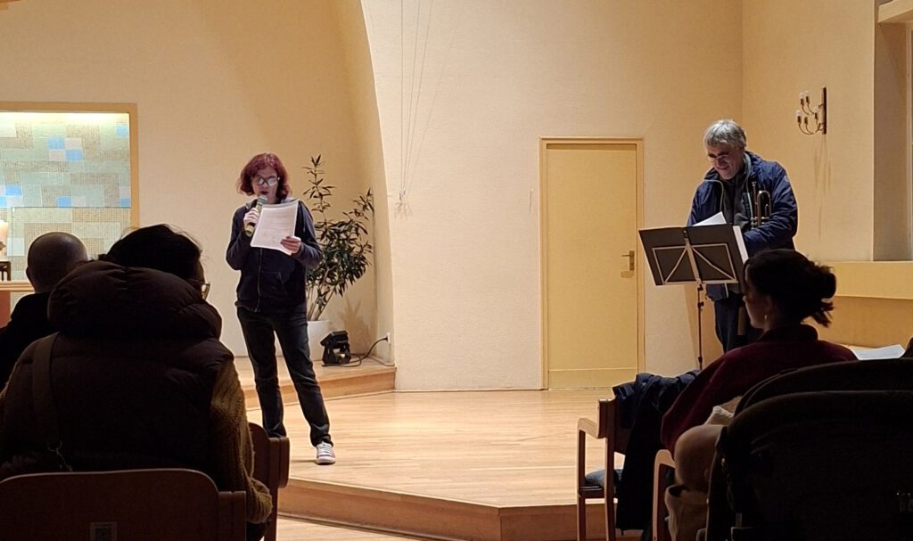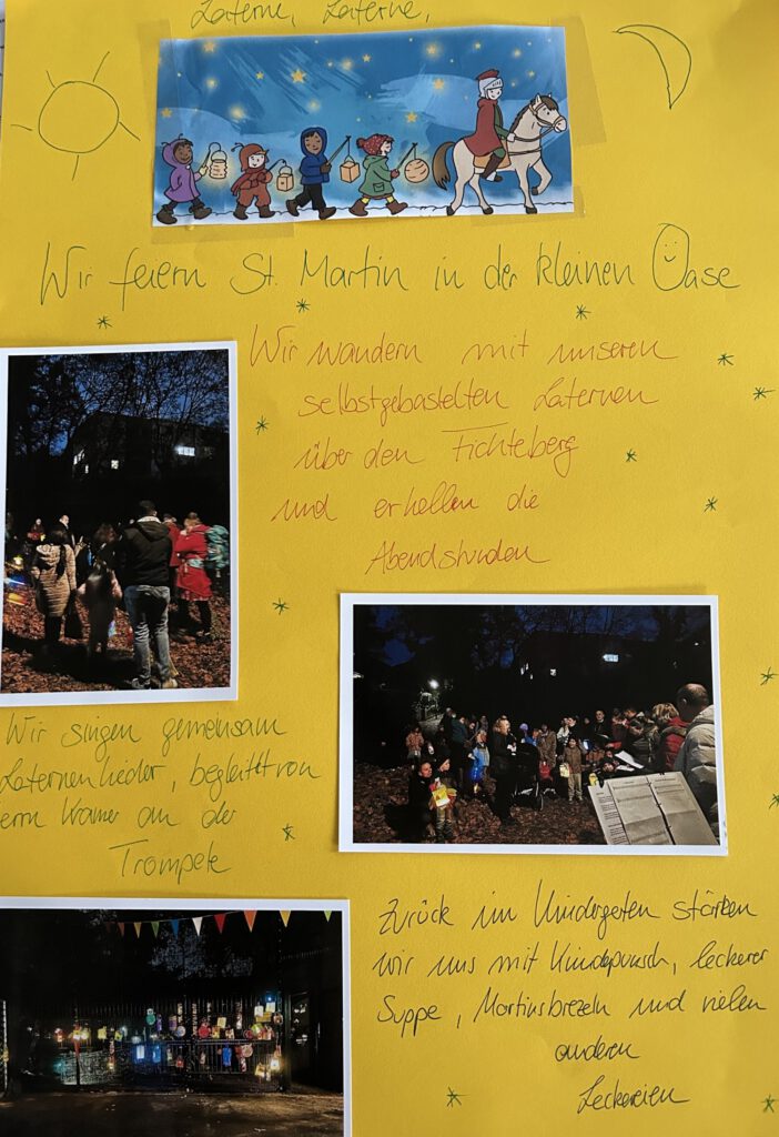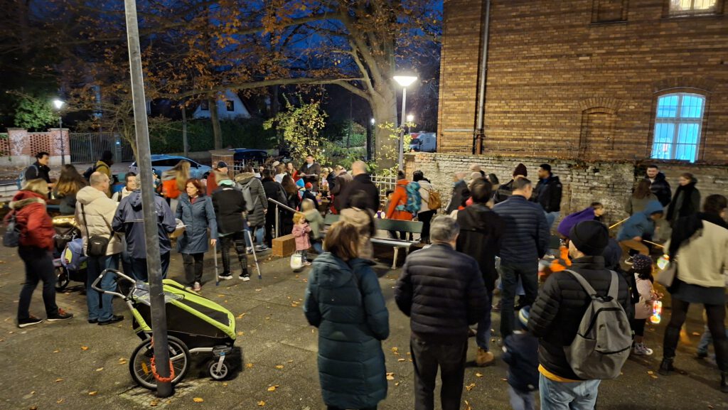 Die Erzählung der St.Martin-Geschichte war die Einstimmung unsere Kindergartenleitung, Frau Silke Bonacker, zu unserem Laternenfest, gefolgte von einem gemeinsames Singen mit Blechbläserbegleitung.